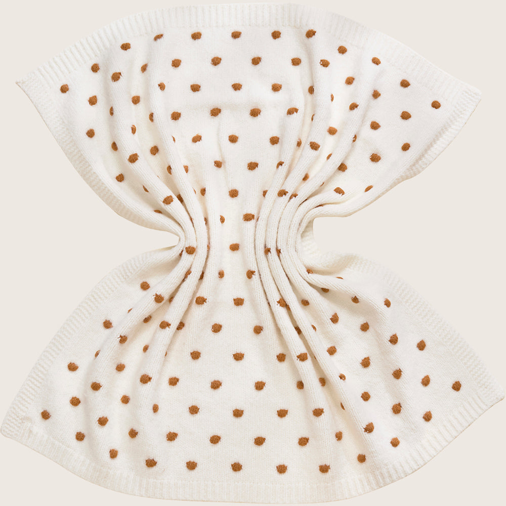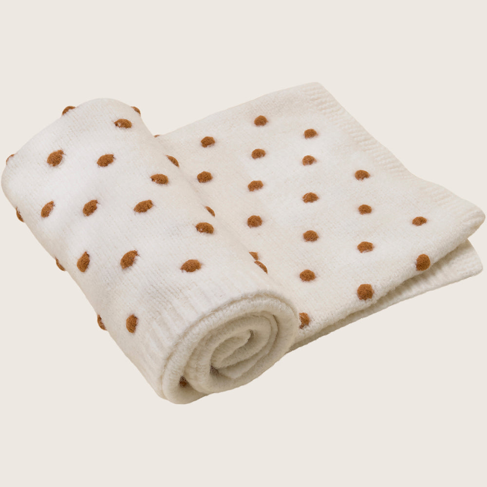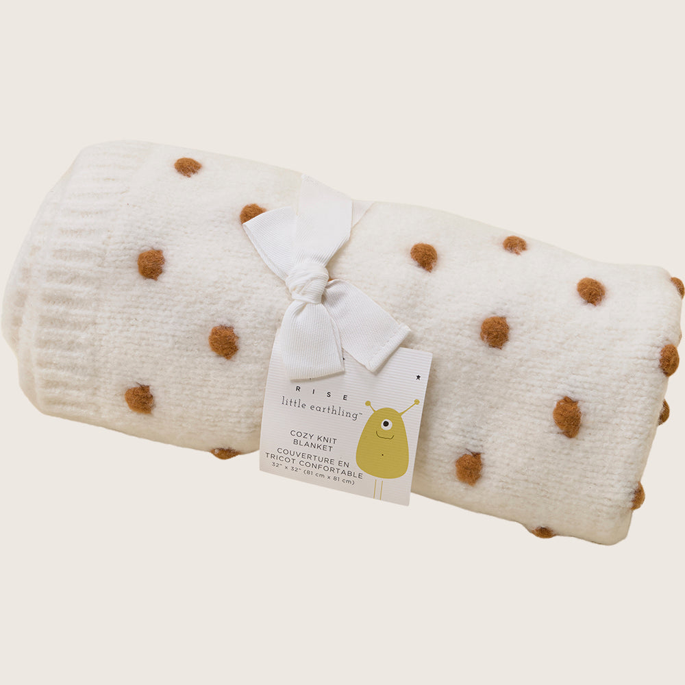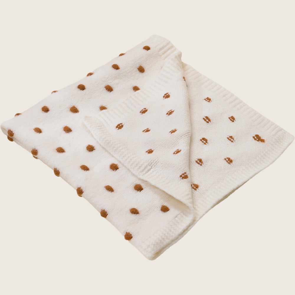 Knitted blanket features a textured popcorn stitch for a cozy, tactile experience.