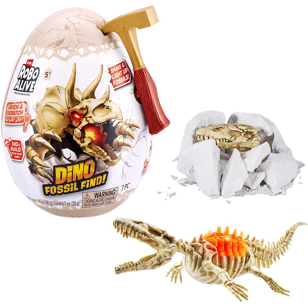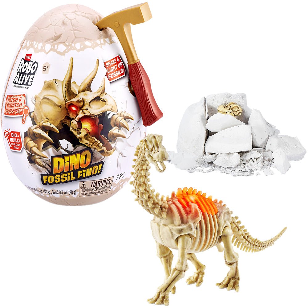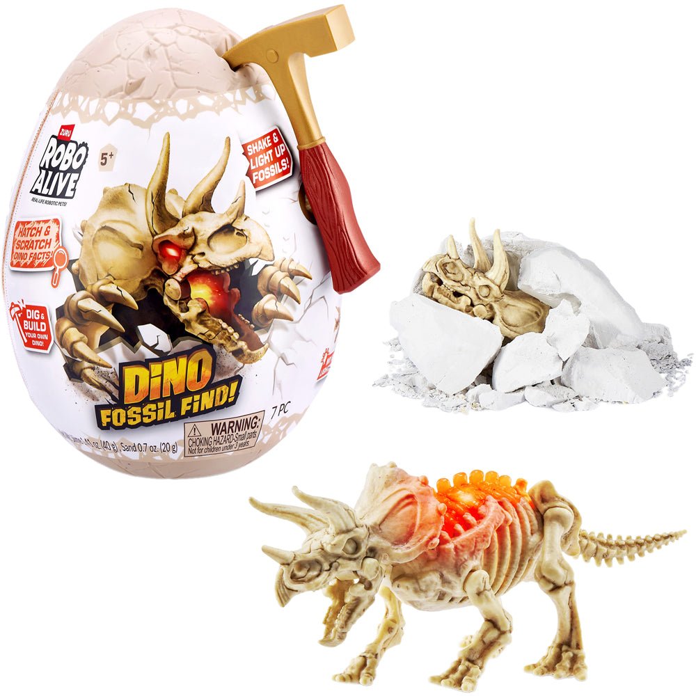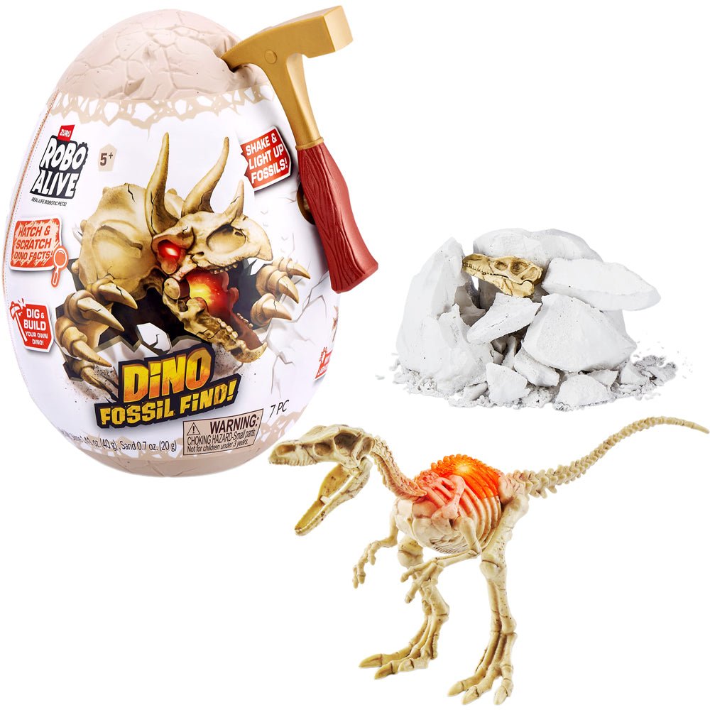 Assemble the fossil pieces to bring your dinosaur skeleton to life with epic lights! Crash and battle your Dino's to see their bodies light up. There are 8 Dino Fossils to unearth and collect. It's more than alive - It's Robo Alive.