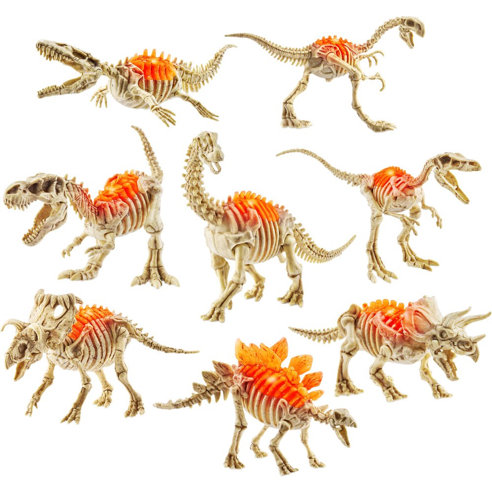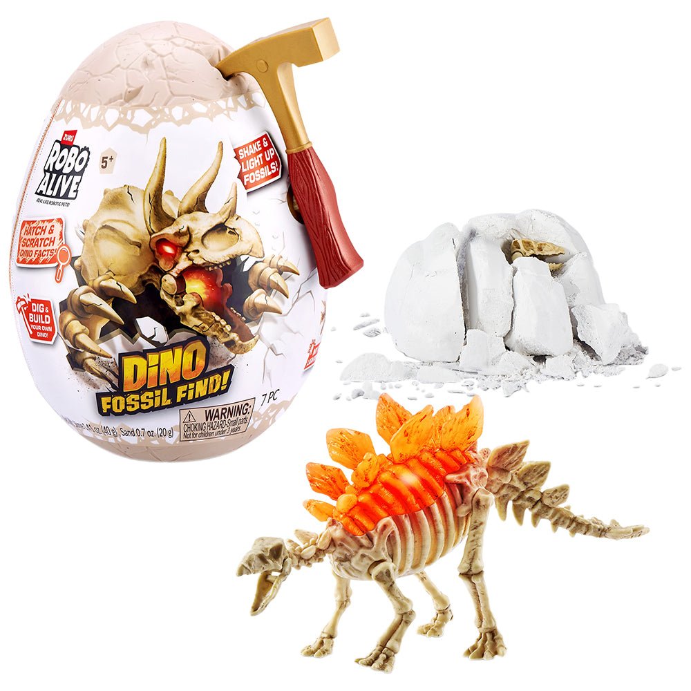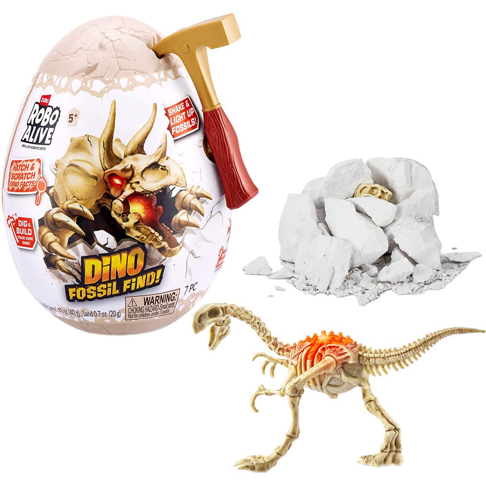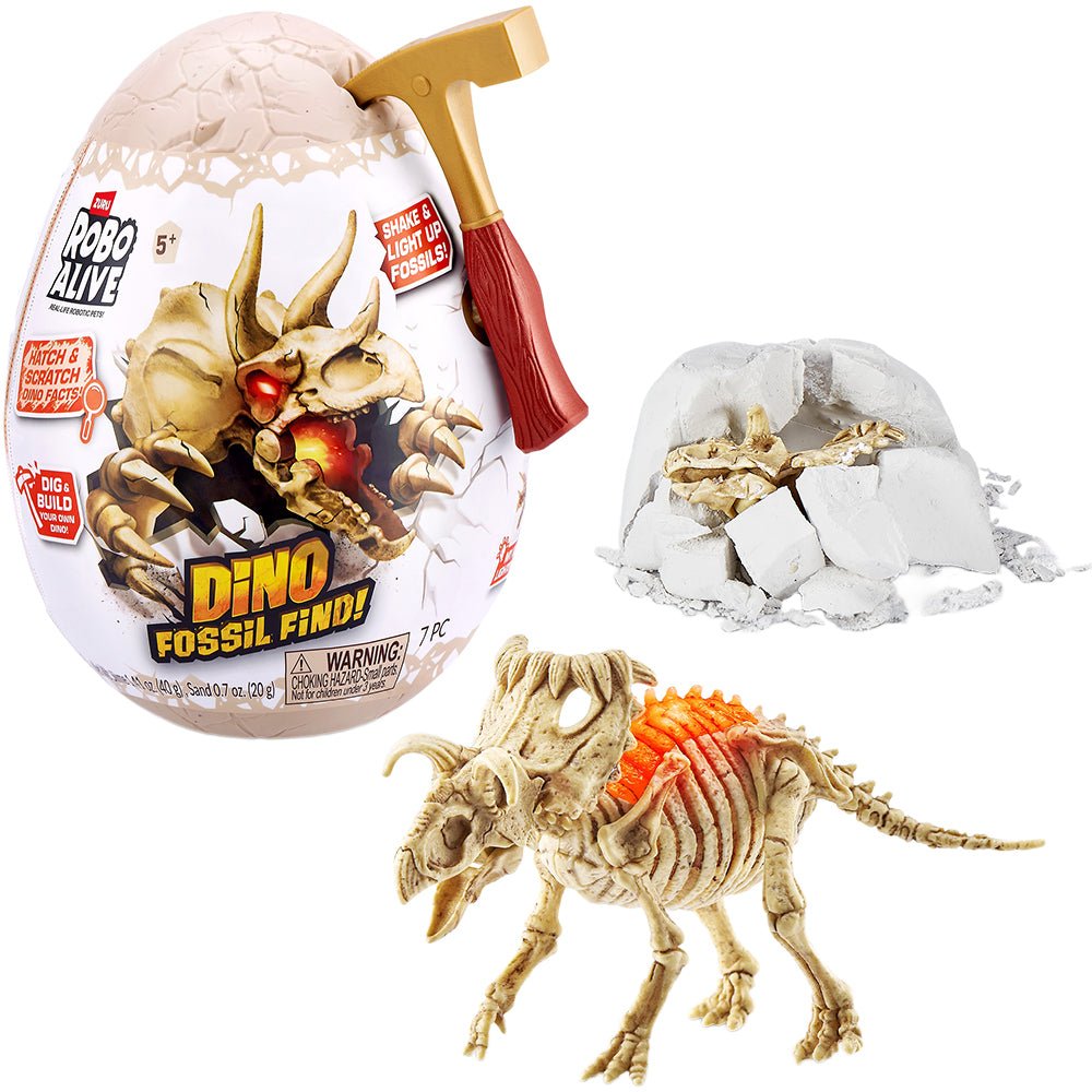 Assemble the fossil pieces to bring your dinosaur skeleton to life with epic lights! Crash and battle your Dino's to see their bodies light up. There are 8 Dino Fossils to unearth and collect. It's more than alive - It's Robo Alive.