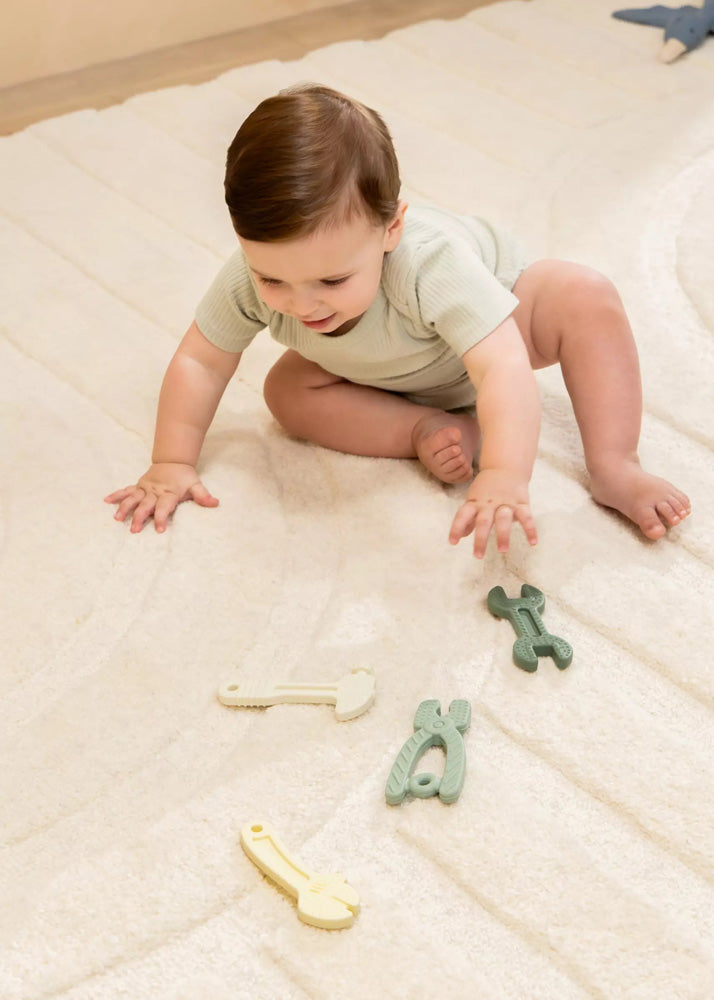 The Set of 4 Silicone Tools greatly contributes to the motor development as well as the hand-eye coordination of infant. This first exploration for babies will help them discover the world around them, and it is through their senses that they will learn about shapes, colors and textures.