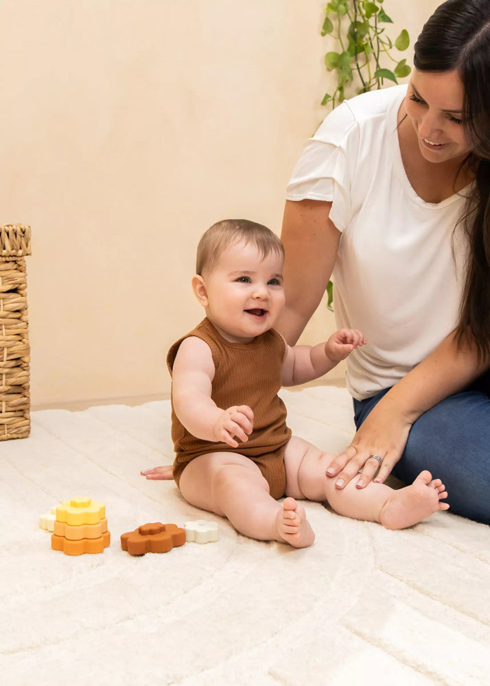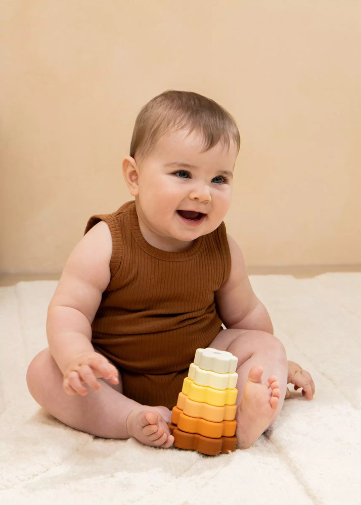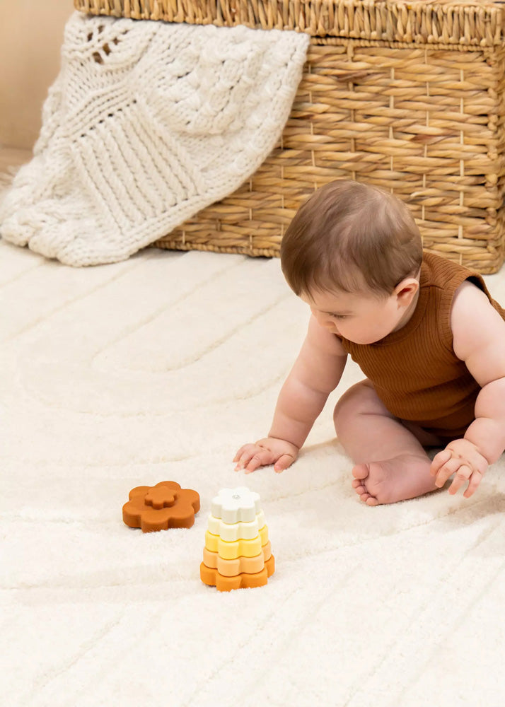 The Set of 6 Silicone Stackable Flowers greatly contributes to the motor development as well as the hand-eye coordination of infant. This first exploration for babies will help them discover the world around them, and it is through their senses that they will learn about shapes, colors and textures.
