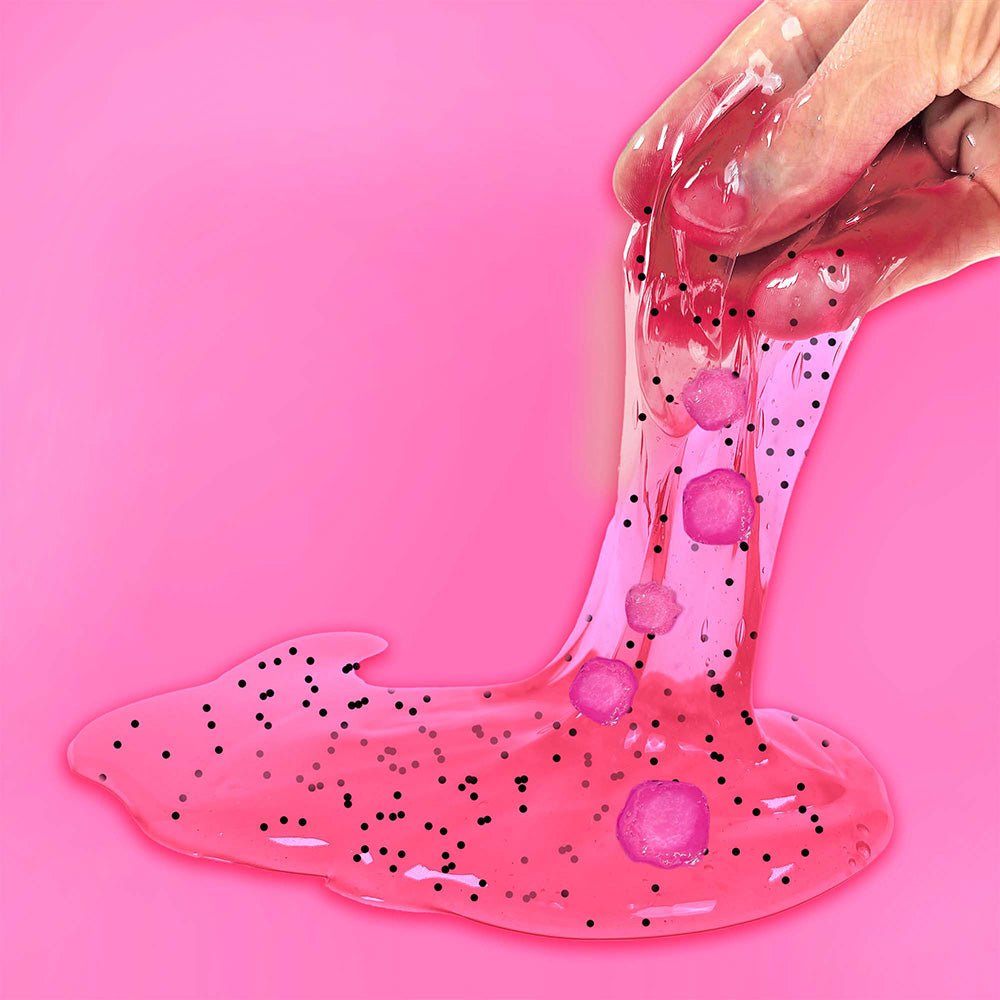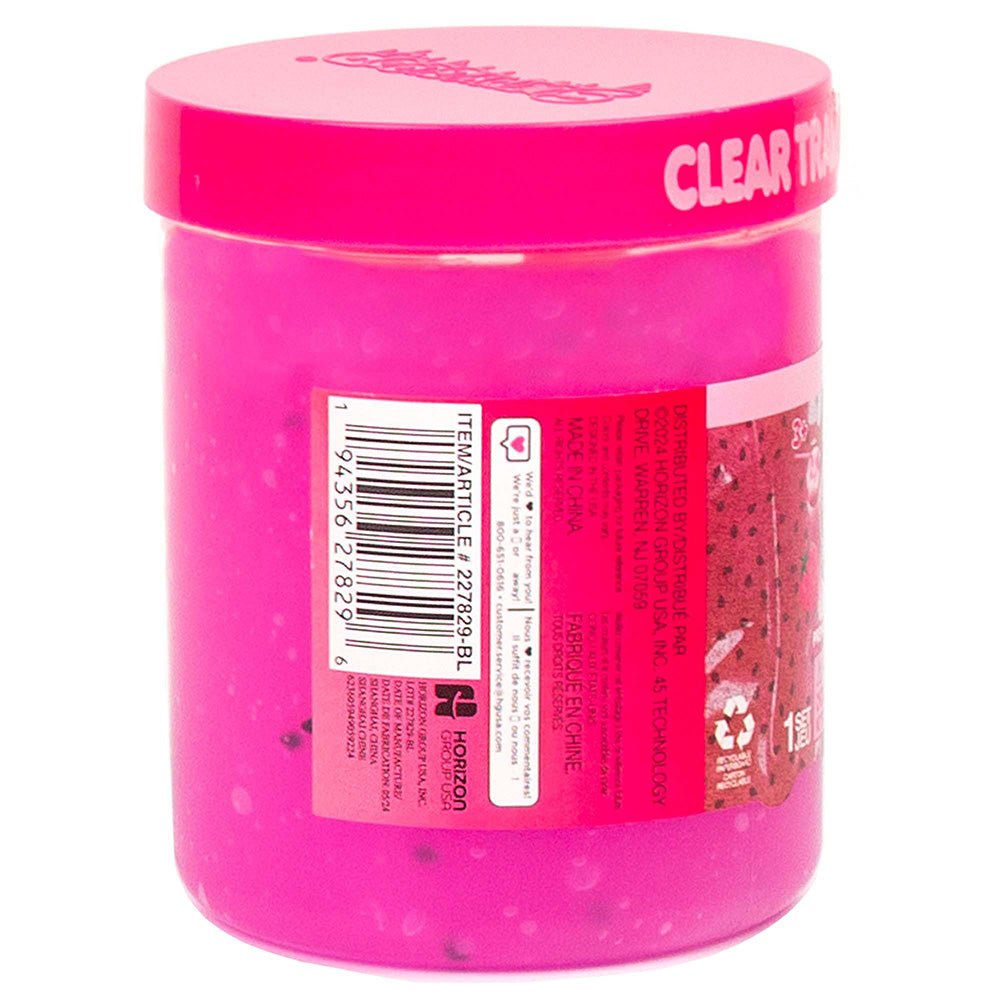 This 8-ounce jar is filled with clear pink slime that looks (and smells!) just like your favorite summertime drink. Packed with a blend of squishy strawberry sponges and black polymer seeds, this slime feels as good as it looks! The sponges add a satisfying squish while the seeds provide cool textural contrast - just like slurping up a real iced tea with fruit bits! Squish it, stretch it, twist it - this slime comes pre-made and ready for endless sensory fun. The resealable container means you can enjoy this refreshing slime treat over and over again! Perfect for any slime lover ages 3 and up.