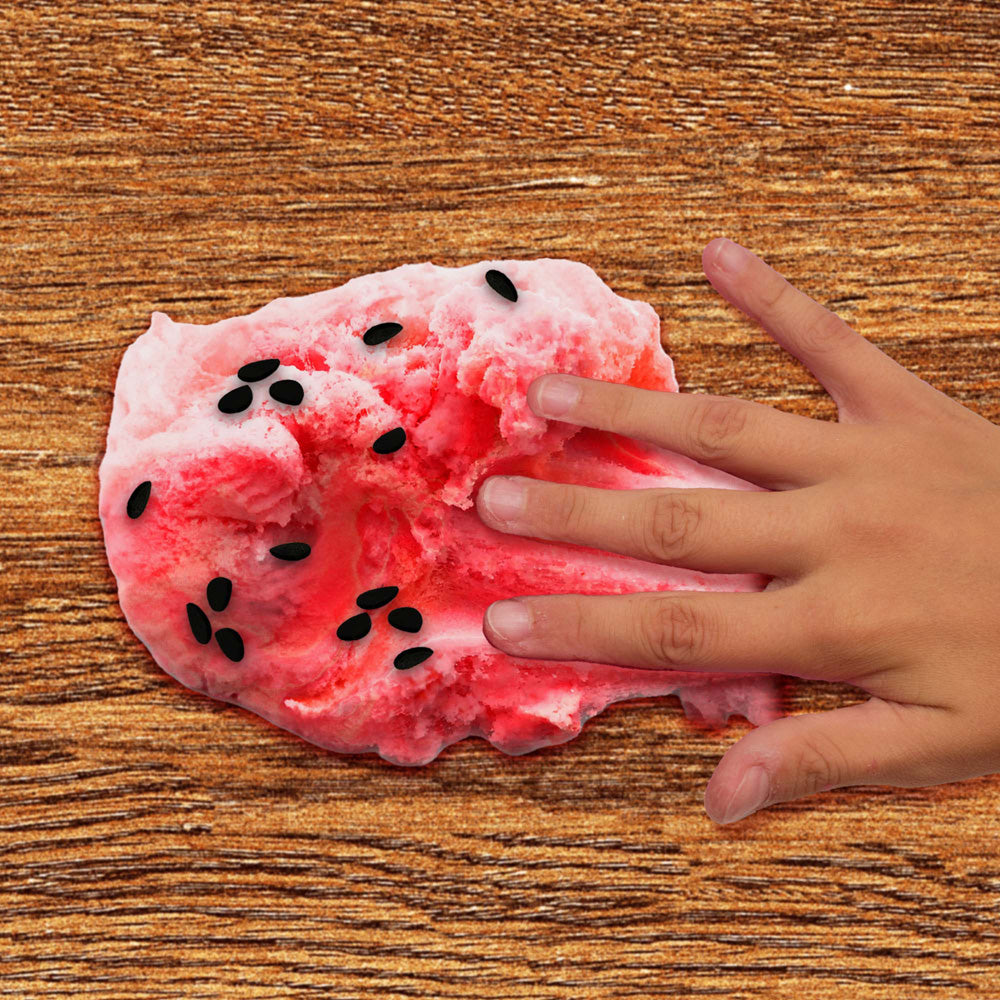 This 8-ounce jar holds fluffy cloud slime that's as red and refreshing as a slice of watermelon on a hot day. Infused with a juicy watermelon scent and packed with black polymer seeds to make it look like the real thing, this slime will make you feel like sunshine! Squish it, stretch it, poke it - this slime comes pre-made and ready to play, and the resealable jar means you can enjoy it again and again! Perfect for any slime lover ages 3 and up.
