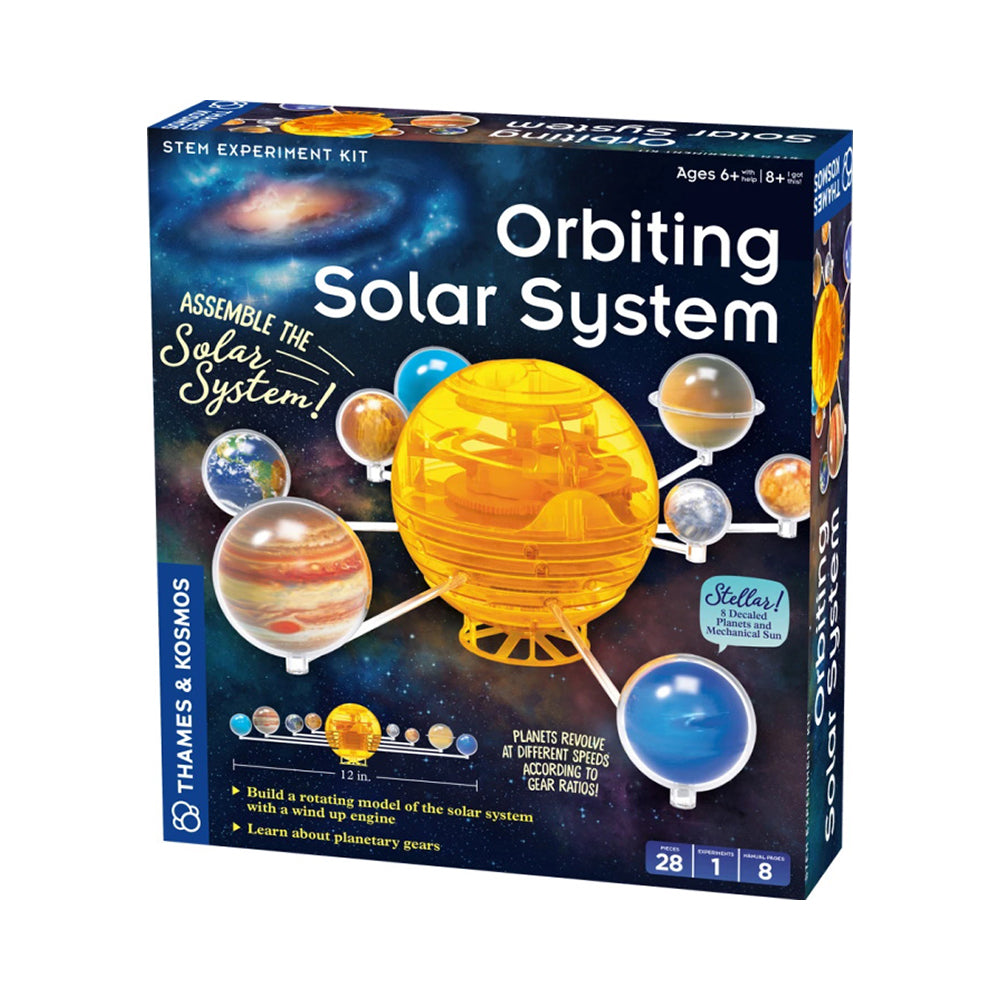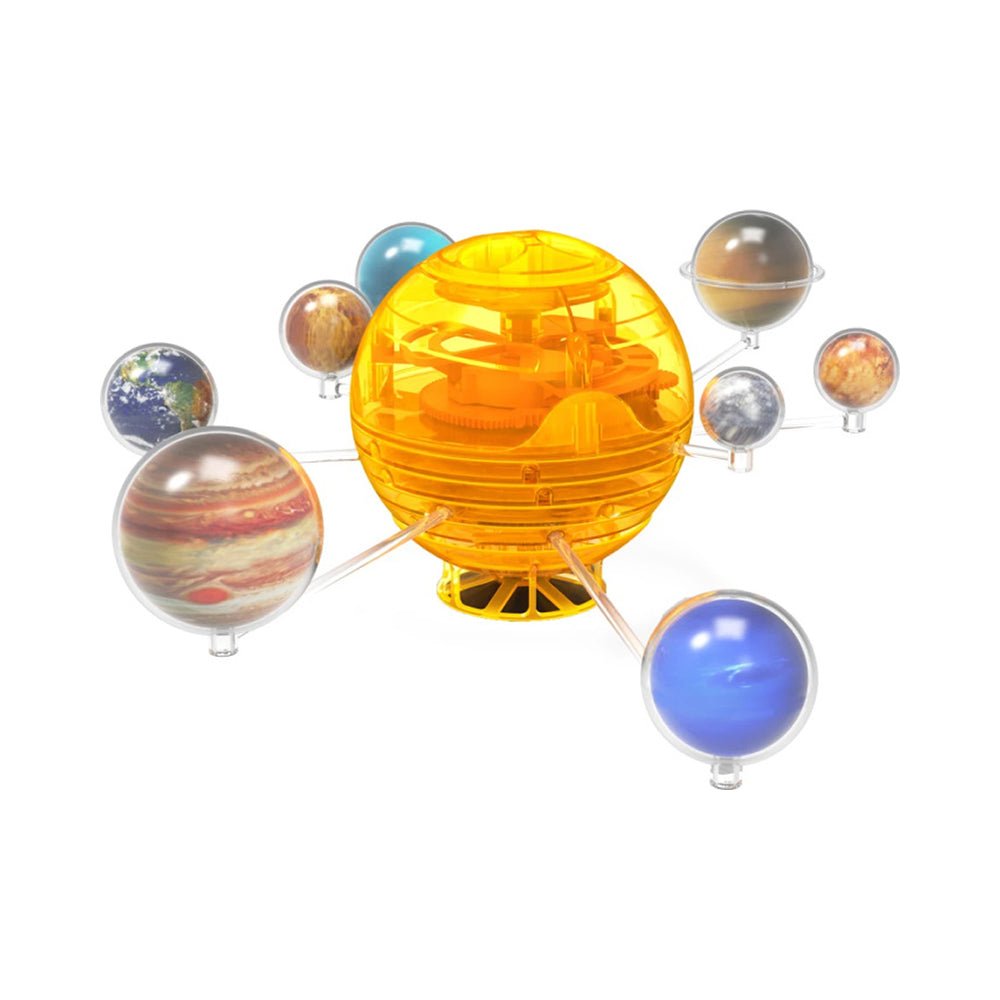Set the planets in motion with a flick of your wrist! Build a mechanical model of the solar system including the sun and eight planets (also known as an orrery), wind it up, and watch the planets revolve around the sun. Assemble this complex machine using snap-together plastic parts to learn how the gears and wind-up mechanism work to spin the model. Detail each planet with colorful, realistic-looking printed planet graphics. Discover how a special type of gear called a planetary gear is used to simulate the mesmerizing motion of the solar system. Learn about the order of the planets, their relative sizes, their rates of revolution around the sun, their appearance, and other planetary facts. Bonus: There's a built-in expansion slot in case the mysterious Planet Nine is discovered! This kit includes full-color step-by-step illustrated assembly instructions. + Build a colorful model of the solar system. + Wind-up engine sets your planets in motion around the sun ?€? no batteries required + Learn about the planets' celestial orbits. + Explore fundamental gear mechanics; planets travel at different speeds depending on the gear ratio.
