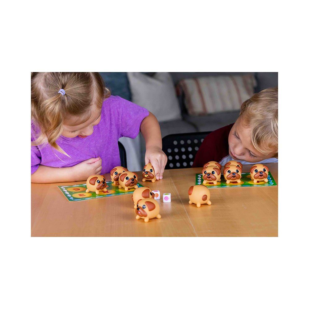 The pugs ate all the lollipops! Luckily their tongues are dyed the colour of the lollipop they had! Each turn, try to match two lollipops on the dice with two squishy pugs that you think licked them! When you gently squeeze the little pups, their tongue comes out! No matter how cute these chubby pugs are, they will not get away with this… The first player to match 6 pugs with lollipops' colours wins the game!