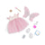 Includes: doll, fairy dress with a shimmer overlay, fairy wings, crown, pair of undies, shoes, tooth fairy box, star wand, piggy bank, 3 coins, and lost tooth certificate.