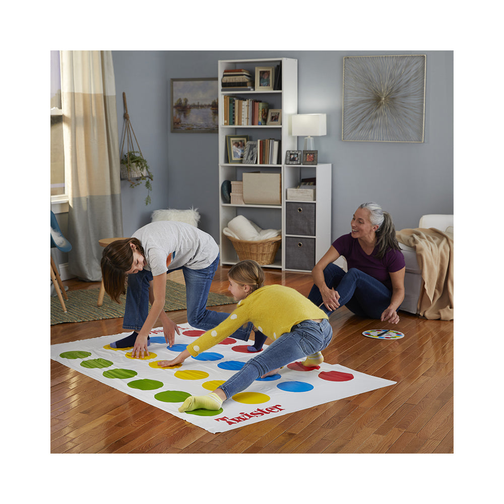 Add a twist of fun into any party or family night with the classic game that ties players up in knots! One person gives the spinner a whirl – see what's next as players try to keep their hands and feet on the mat! Right foot red! Who can do it? Left foot green – who's got it? If a player's knee or elbow touches the mat or falls over, they're out. The last player standing wins! Includes 1 Twister mat, 1 spinner, and instructions.