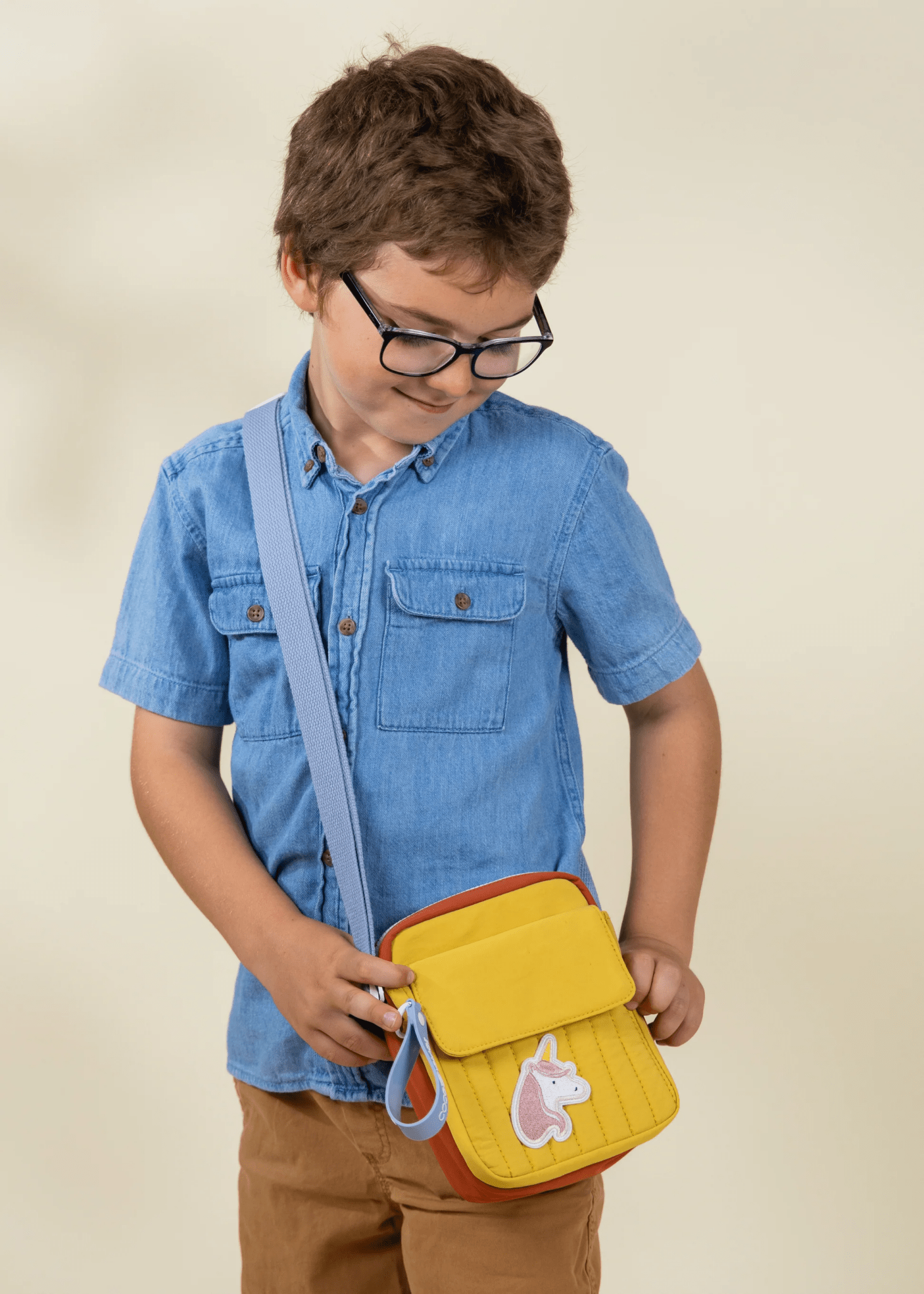 This cute and compact crossbody bag is just the right size for little ones to carry their essentials. Perfect for storing small items like snacks, toys, or a phone, it’s a convenient accessory for everyday adventures.