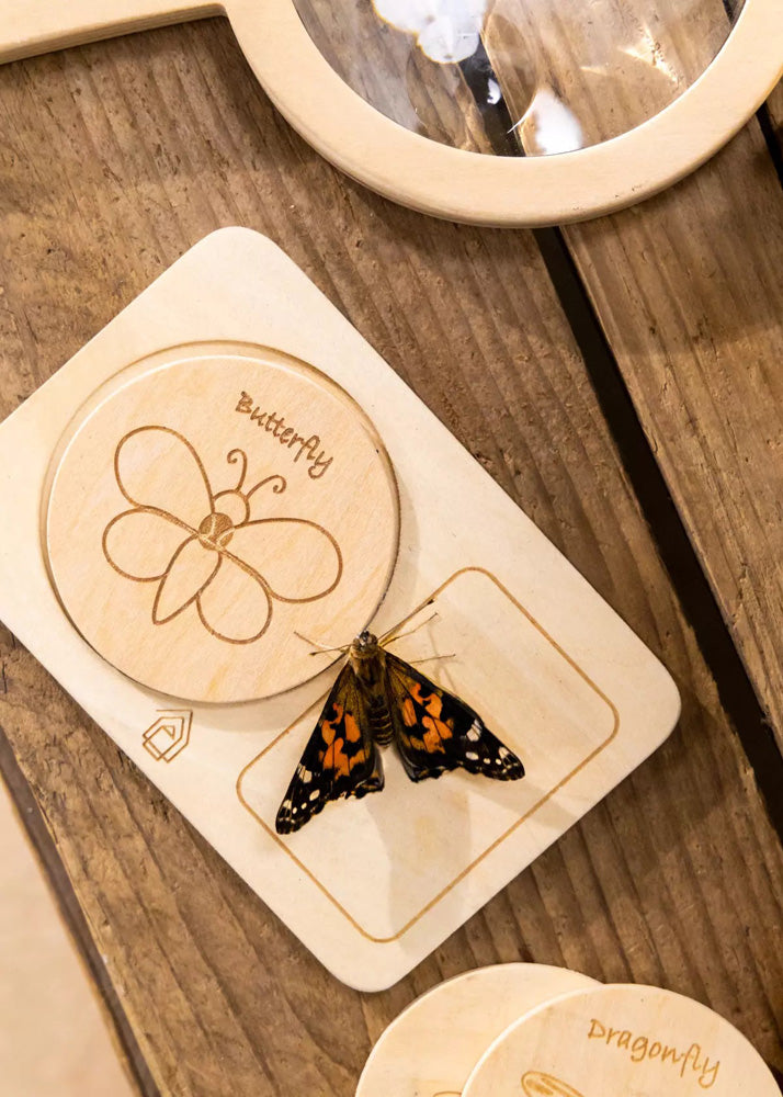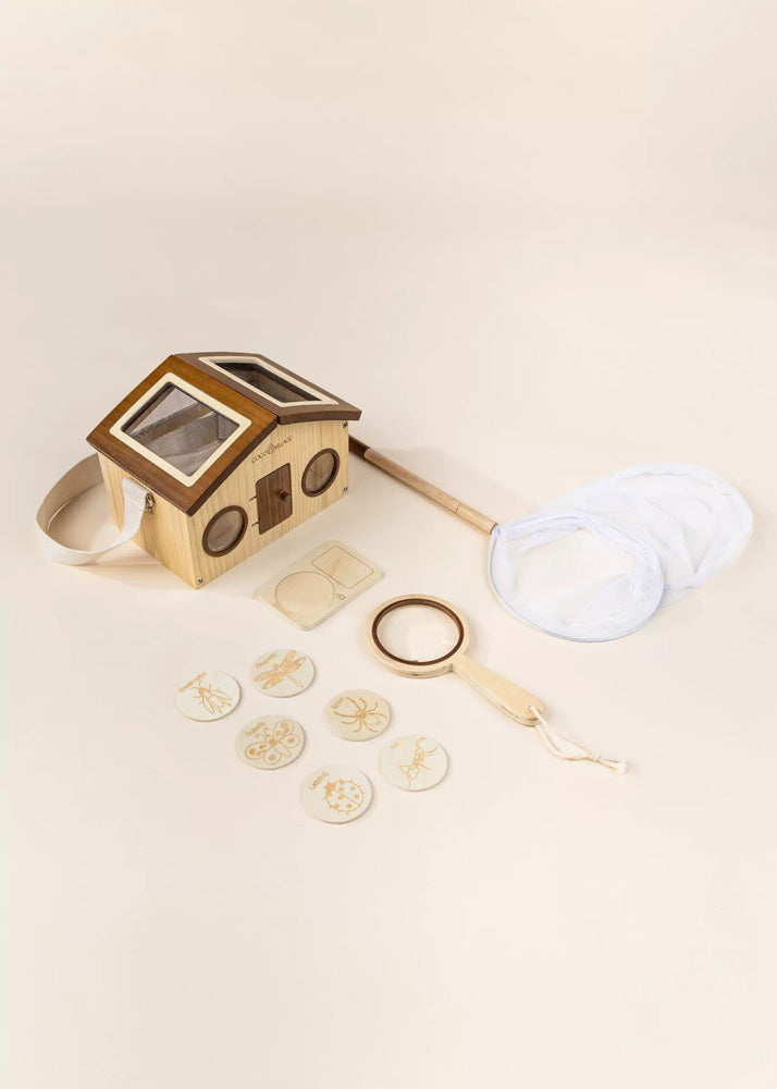 Kids love to explore and learn about the world and that's what makes the Wooden Bug Catcher & Exploration Set so great! The curious little ones will be able to discover all the life that hides in the courtyard of their house. Its small roof opens and it is equipped with grills on the top, the front and the back so that the critters breathe well and are very comfortable in their temporary home. The strap is super practical: the child can quickly put it on his shoulder and go on an adventure! The Bug Catcher comes with a net to catch bugs and a magnifying glass to observe them, as well as a thoughtful identification tag to take pictures of them!