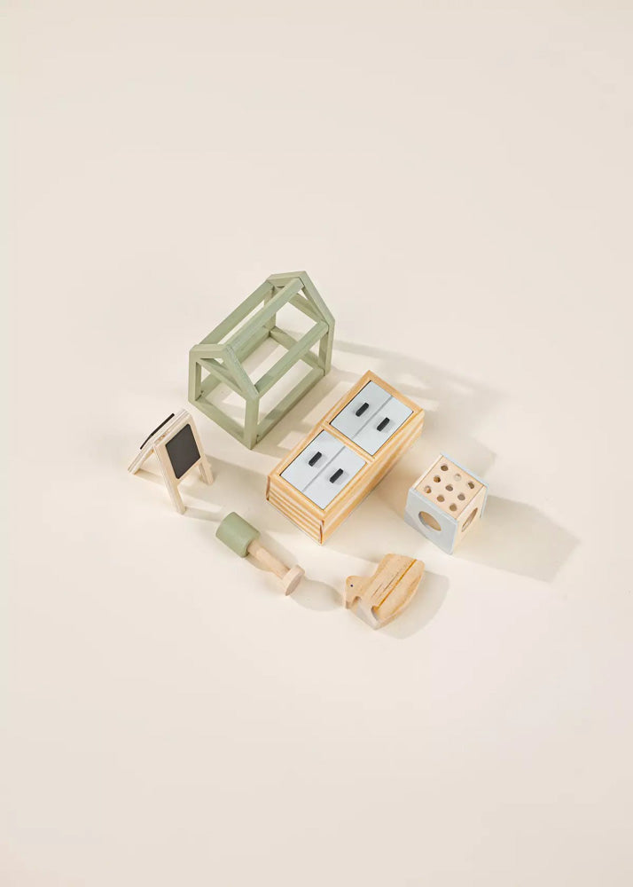 This Doll House set of furniture and accessories is all about creating a welcoming and warm space. Each item allows the child to arrange the space by giving free rein to their imagination.