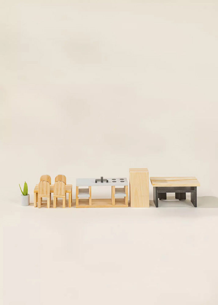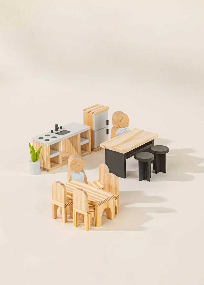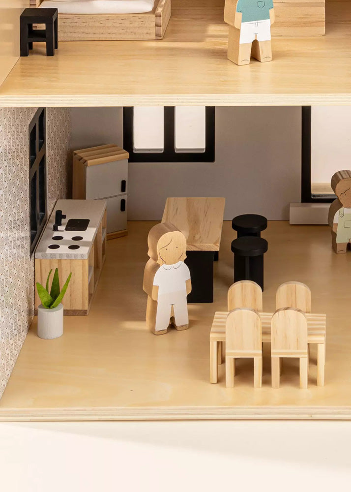 This Doll House set of furniture and accessories is all about creating a welcoming and warm space. Each item allows the child to arrange the space by giving free rein to their imagination.